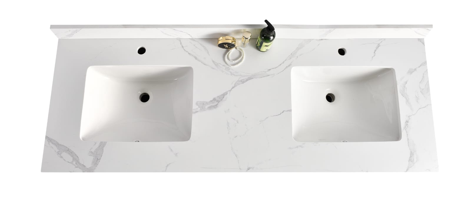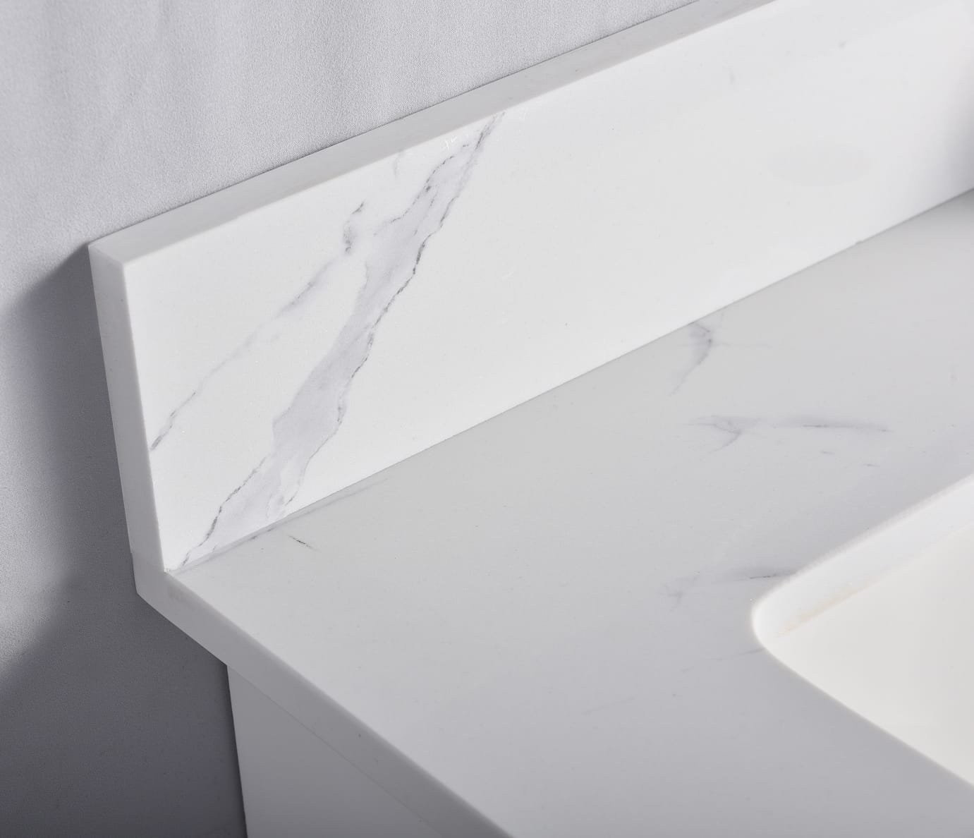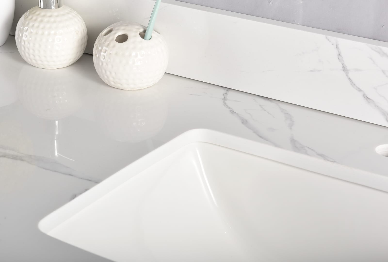 Inspired by the classic philosophy the bathroom vanity was designed to capture beauty and scaled down to perfection. The build is of high quality solid maple wood and finished in Ivory / Dark Walnut complexion. A durable white stone top rests magnificently above the vanity. Finally, a beautiful white ceramic basin thrones the vanity and is crowned by a beautifully designed stainless steel faucet. It is a well designed contemporary bathroom vanity. It features two soft-closing door . A matching mirror will accent an elegant Euro classic design.