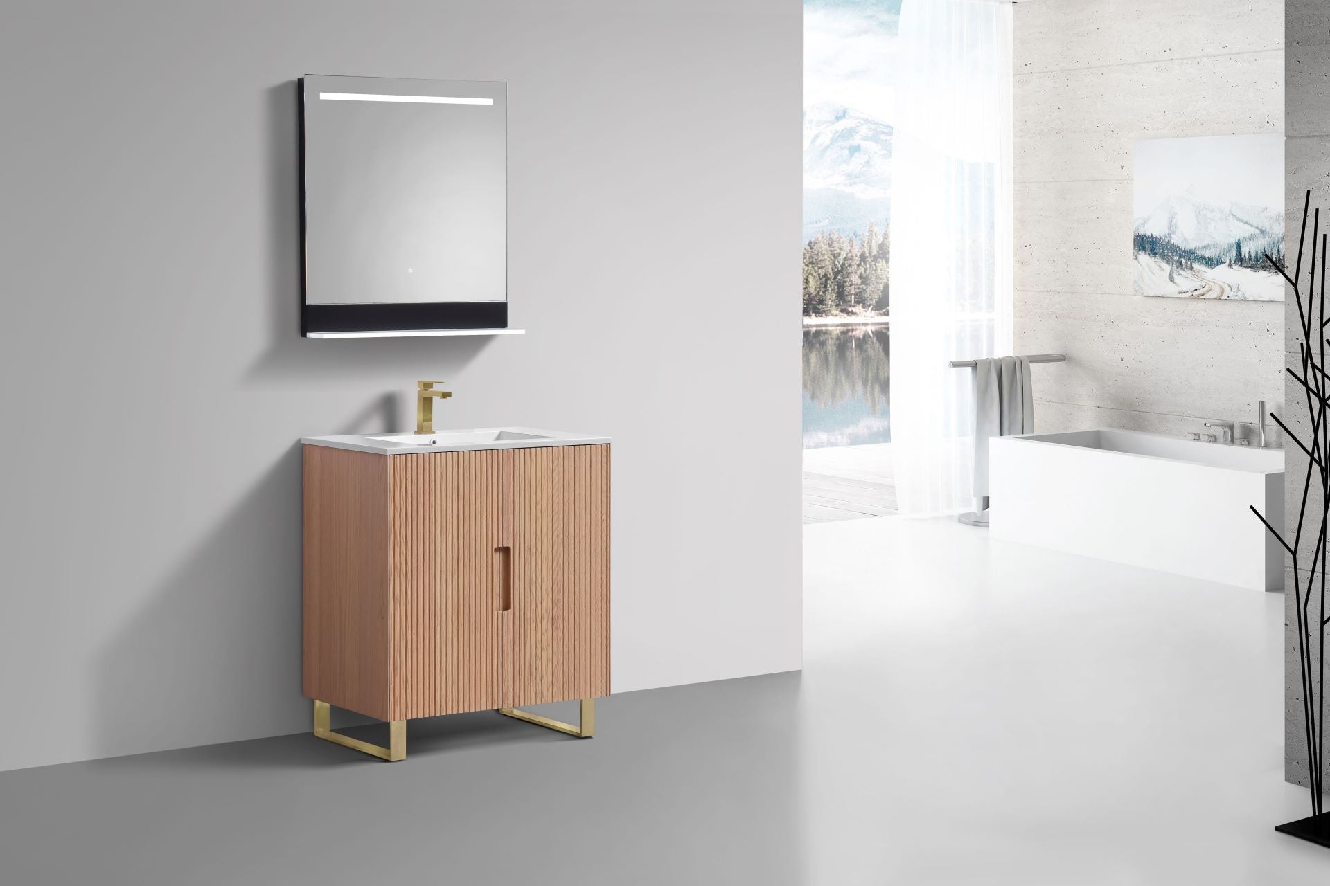 32” Fiore Free Standing Bathroom Vanity w/ Gold Legs – Oakwood