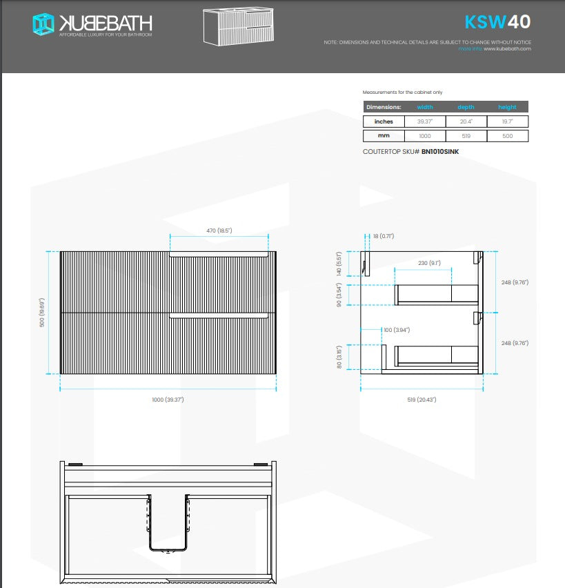 KubeBath FIORE Wall Mount Vanity. Boosting a mid-century modern style, the Fiore Vanity features solid wood construction and full extension, soft-closing drawers and doors with plenty of storage.