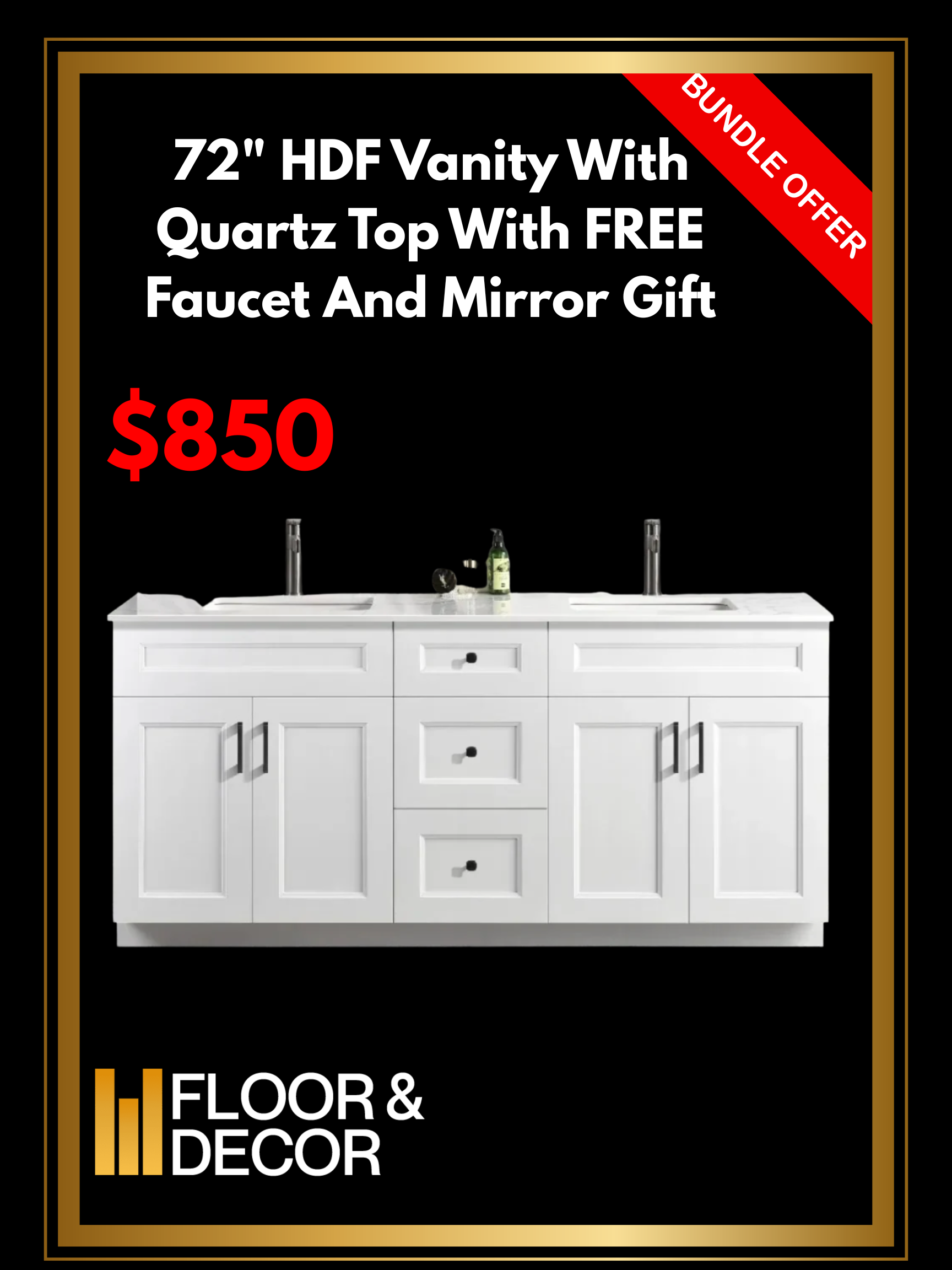 72" HDF Vanity With Quartz Top With Free Faucet And Mirror Gift