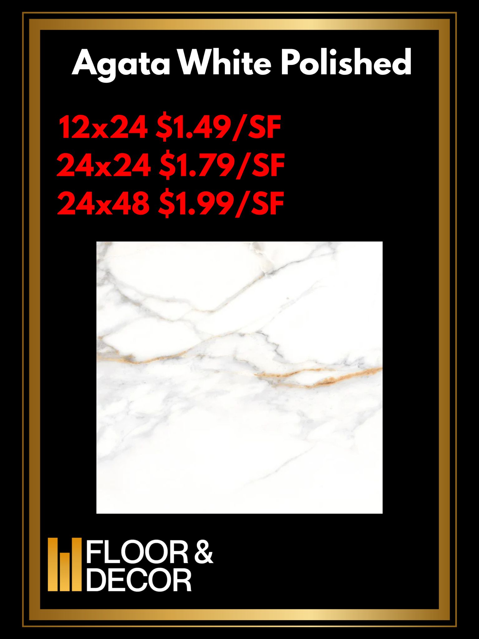 Agata White Polished 12x24 @1.49/sf, 24x24 @1.79/sf And 24x48 @1.99/sf