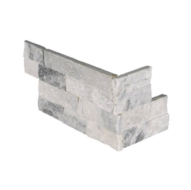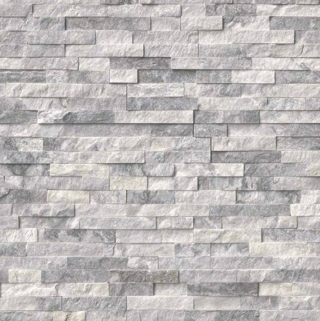 Alaska Gray Stacked Stone panels are crafted from fine split face marble. The soft gray tones are complemented by the natural variance and veining of marble. Use to create beautiful design features including accent walls, fireplace walls, and for exterior projects including cladding of structures and architectural elements including support beams and retaining walls. Matching corners are available to finish off projects.