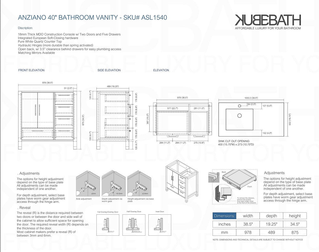The Anziano Bathroom Vanity provides a contemporary design perfect for any bathroom remodel. The ample storage in this free-standing vanity includes two Doors and four fully functional drawers lining the cabinet, with chrome hardware accents. The pure white countertop it is made using nanotechnology, that makes it virtually impenetrable and maintenance free.