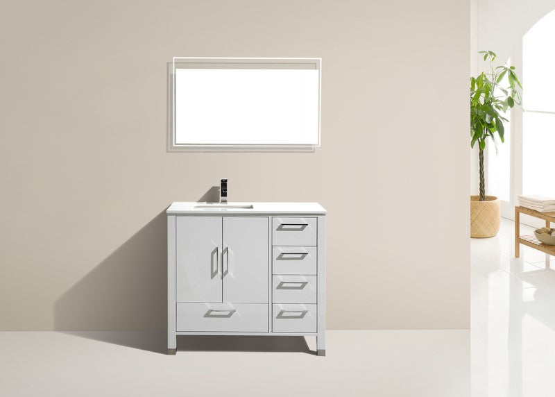 Anziano 40″ Inch High Gloss White Vanity W/ White Countertop