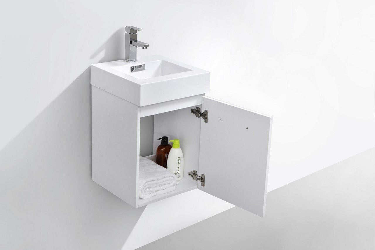 Bliss 16″ Inch High Gloss White Wall Mount Modern Bathroom Vanity