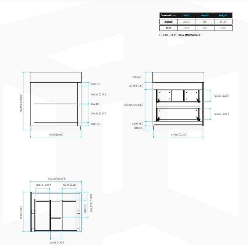 The Bliss is one of the most elegant modern Bathroom Vanities around. This 24-inch model comes with a reinforced Acrylic sink, Marine Wood Veneer Constructed Console that is fully moister and waterproof, with high-quality European Hardware, that provides smooth push-open operation drawers.