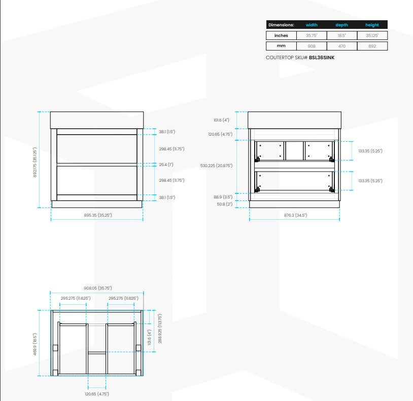 The Bliss is one of the most elegant modern Bathroom Vanities around. This 36 Inch model comes with a reinforced Acrylic sink, MDF Constructed Console, with high quality European DTC Hardware, that provides smooth push-open operation drawers.