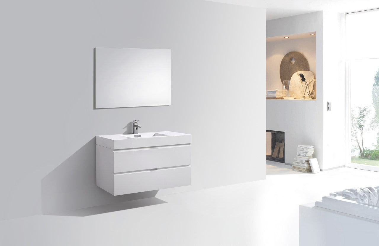 The Bliss is one of the most elegant modern Bathroom Vanities around. This 36 Inch model comes with a reinforced Acrylic sink, MDF Wood Constructed Console that is fully moister and water proof, with high quality European DTC Hardware, that provides smooth soft-closing operation drawers.