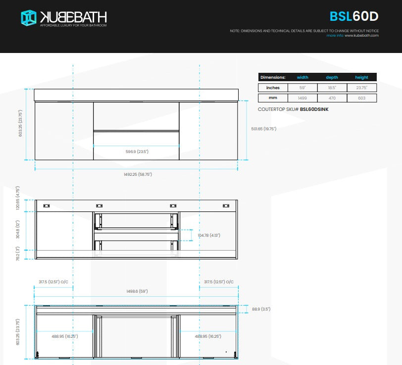 The Bliss is one of the most elegant modern Bathroom Vanities around. This 60 inch model comes with a reinforced Acrylic sink, Marine Wood Veneer Constructed Console that is fully moister and waterproof, with high-quality European DTC Hardware, that provides smooth soft-closing operation drawers.