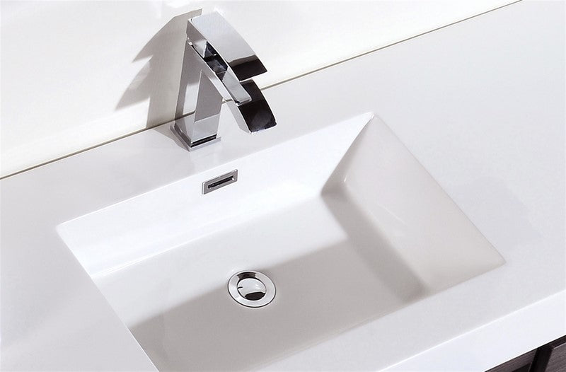 The Bliss is one of the most elegant modern Bathroom Vanities around. This 60 Inch model comes with a reinforced Acrylic sink, Marine Wood Veneer Constructed Console that is fully moister and water proof, with high quality European DTC Hardware, that provides smooth soft-closing operation drawers.