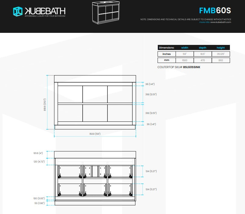 The Bliss is one of the most elegant modern Bathroom Vanities around. This 60 Inch model comes with a reinforced Acrylic sink, Marine Wood Veneer Constructed Console that is fully moister and water proof, with high quality European Hardware, that provides smooth push-open operation drawers.