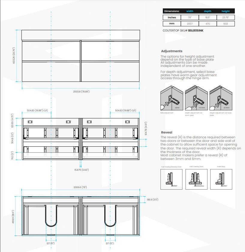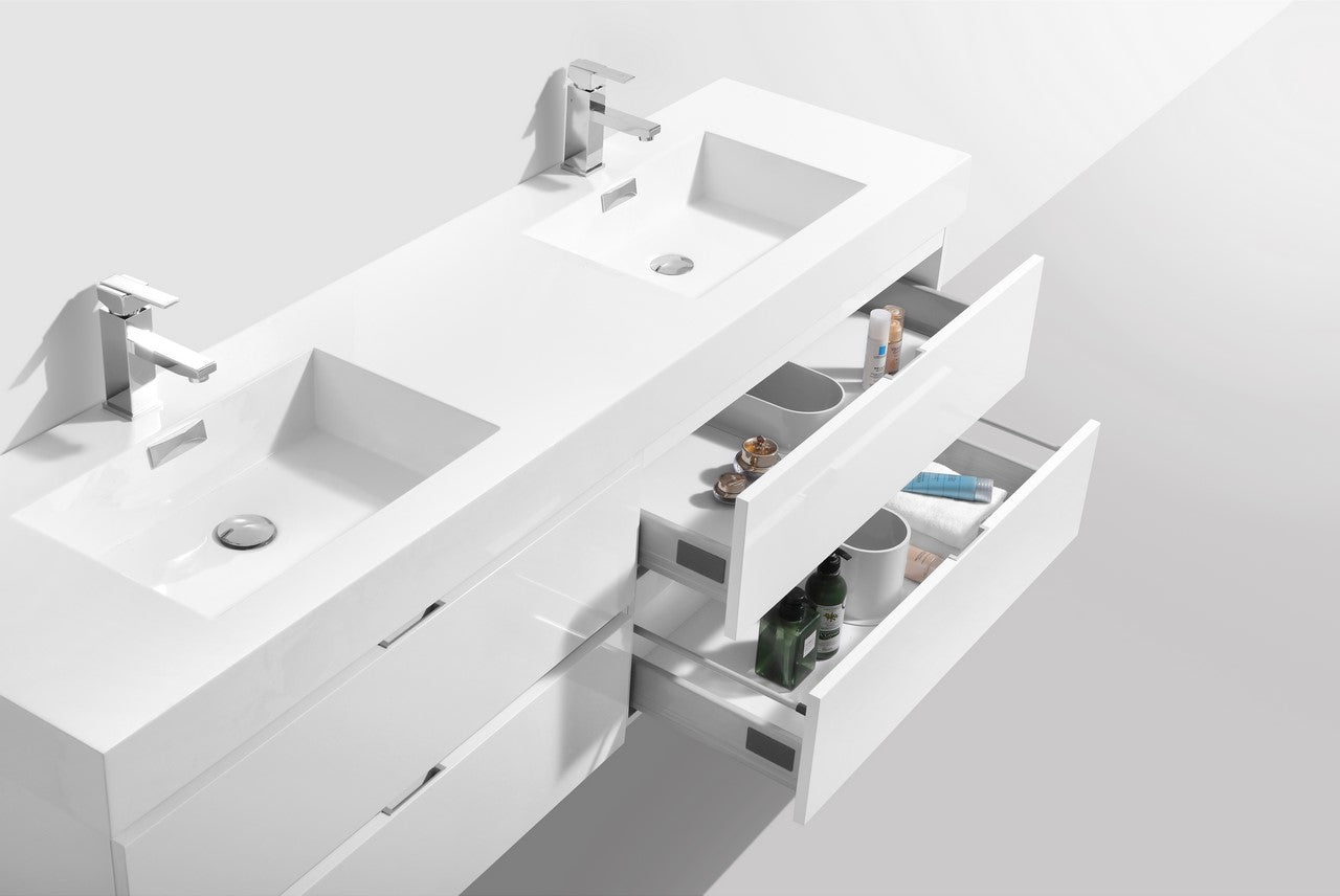 The Bliss is one of the most elegant modern Bathroom Vanities around. This 80 Inch model comes with a reinforced Acrylic sink, MDF Wood Constructed Console with high quality European Hardware, that provides smooth soft-closing operation drawers.