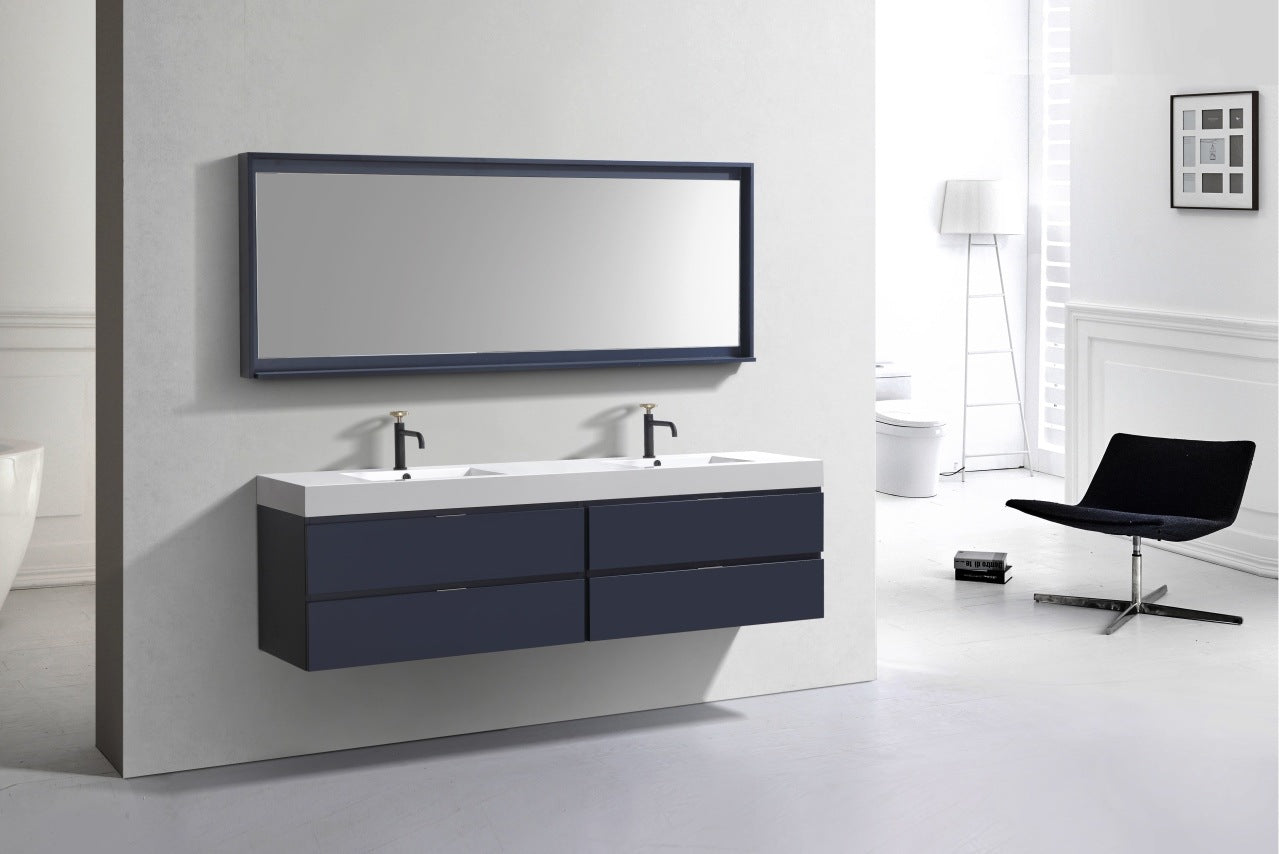 Bliss 80″ Inch Navy Blue Wall Mount Double Sink Modern Bathroom Vanity