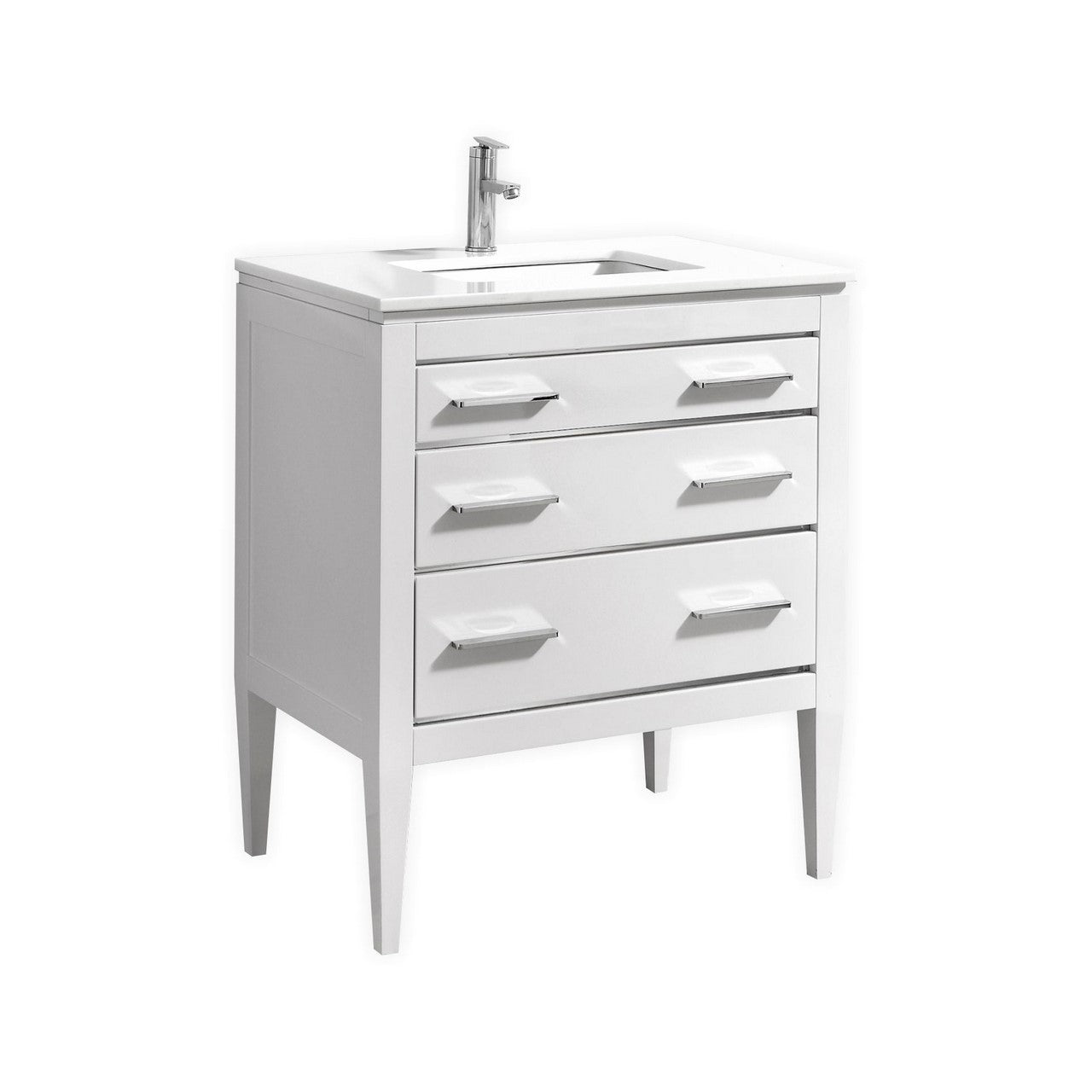 Eiffel 30” Inch High Gloss White Vanity W/ White Countertop
