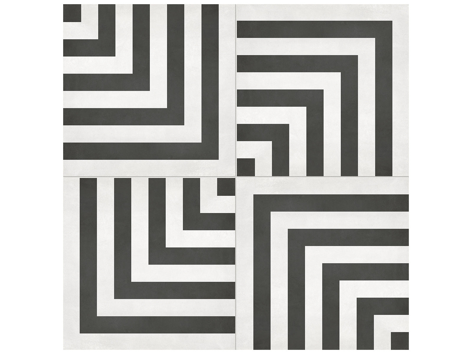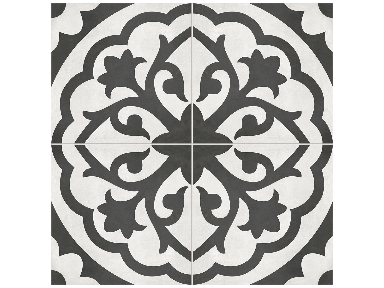 Variegated graphics and floral decorations inspired by prototypical encaustic tiles, designed with contemporary colors and character.