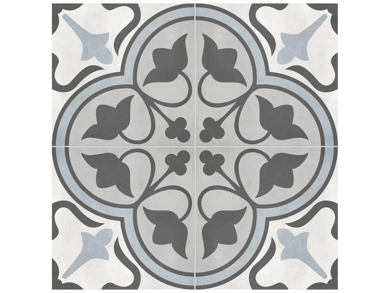 Variegated graphics and floral decorations inspired by prototypical encaustic tiles, designed with contemporary colors and character.