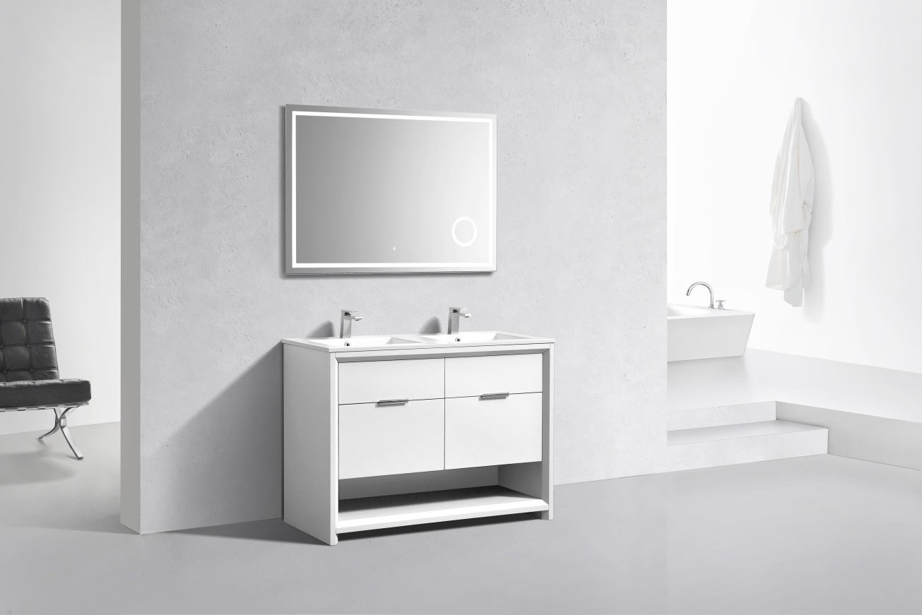 48″ Inch Double Sink Nudo Kubebath Modern Bathroom Vanity In High Gloss White Finish