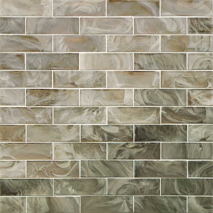 In Opalina Glass Subway Tile, the classic subway pattern meets modern luminous gray, greige and cream, marbled in a mesmerizing surface that evokes the mother-of-pearl heart of an opal. This 2x6 solid glass tile catches and reflects light, for an ever-changing look throughout the day. In addition, modern glass tile is easy to care for, stain resistant, and durable, suited for use as an accent wall or backsplash tile, or even as a countertop accent in residential spaces.