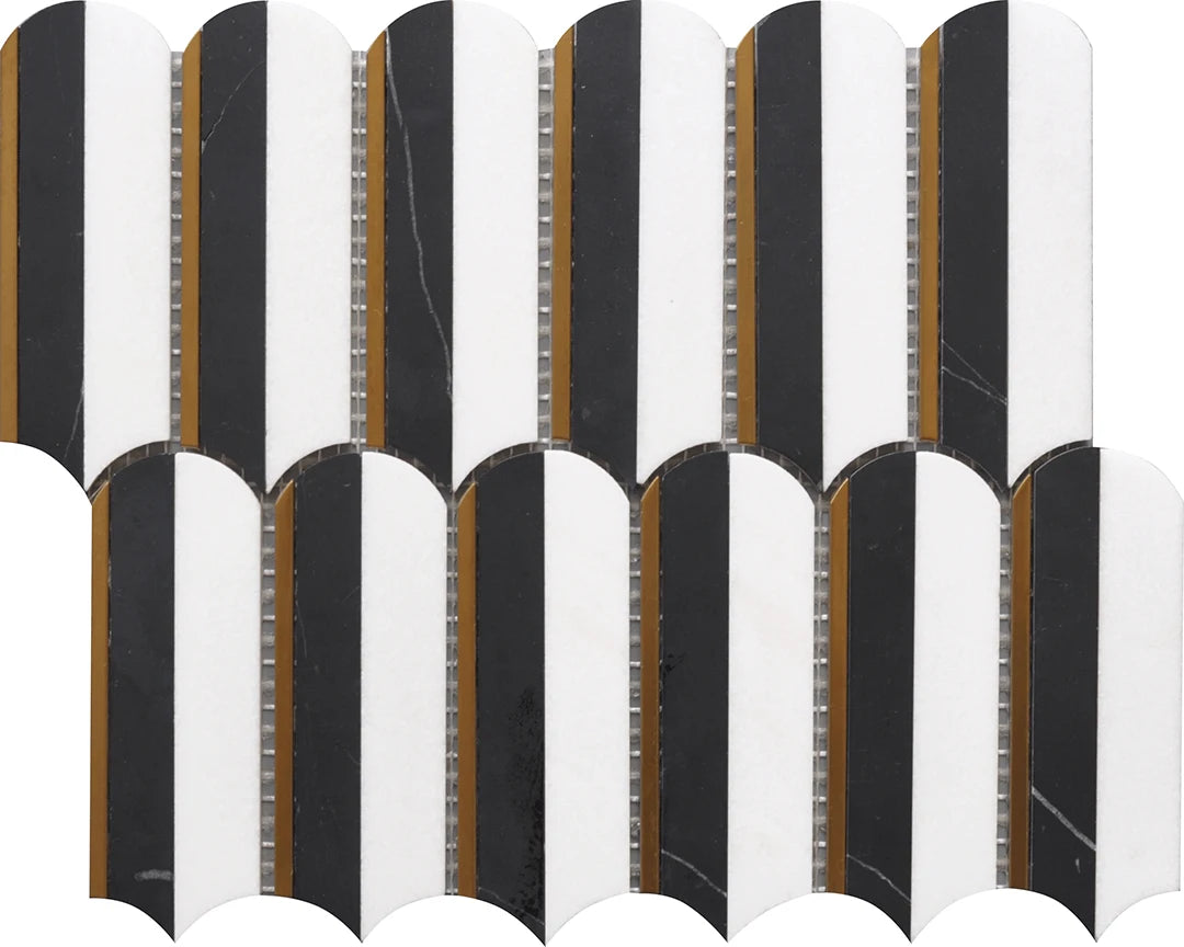 The Oval Nero Marquina & Thassos Mosaic combines bold black marble with crisp white marble to create a timeless, elegant contrast. Each 10″x11″ sheet features smooth oval patterns, offering a refined and stylish look perfect for backsplashes, feature walls, and bathroom designs.