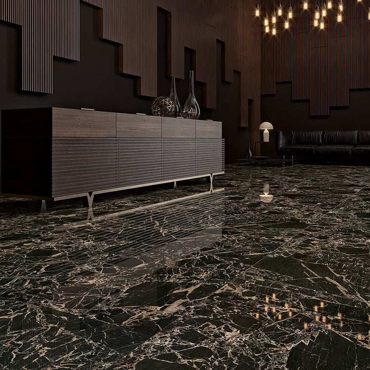 Tiger Black is a marble-effect porcelain tile and forms part of our Marble Sense. This tile is offered with a Glossy finish and is available in 6 different faces.