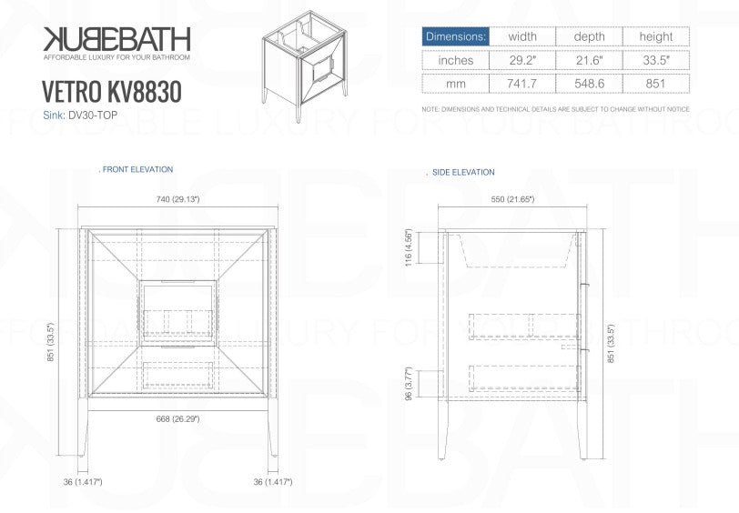 The Vetro 30″ Vanity features two fully functional drawers, two doors and a pure white Quartz countertop with white Ceramic undermount Sink. The cabinet constructed in solid birch, with a rich blue lacquer paint finish, while the inside of the drawers are varnished, with the natural wood color exposed.